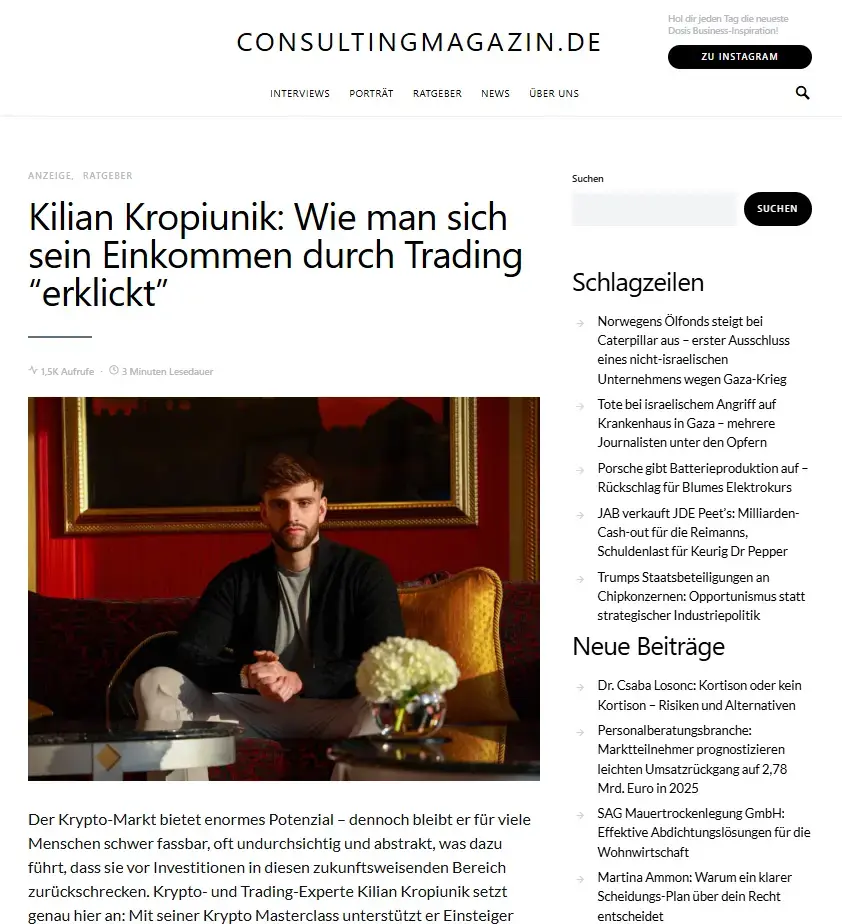 Er ist seit sechs Jahren Krypto-Investor und -Trader und hat in dieser Zeit vielen Menschen durch Kryptowährungen zur finanziellen Freiheit verholfen. Zusammen mit zwei Geschäftspartnern leitet er die Wiener Vermögensberatung "Coinzultance" und arbeitet dort als "Chief Market Analyst".